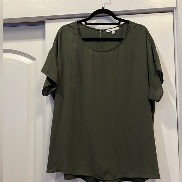 DR2 Top Short sleeve blouse with pleated back with a covered button in the back Olive green Size: XXL Pet free smoke free home