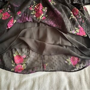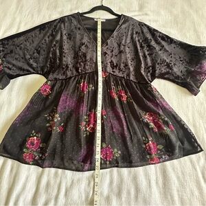 DR2 Tunic Top Womens Large Black Velvet Floral Sheer Ruffle Sleeve Boho Peplum Whimsigoth Dark Cottagecore