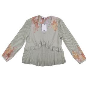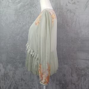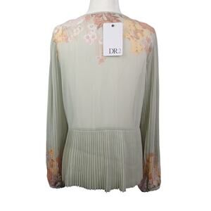 DR2 Womens Blouse M Floral Babydoll Sage Empire Ruffle Pleated Romantic Coquette