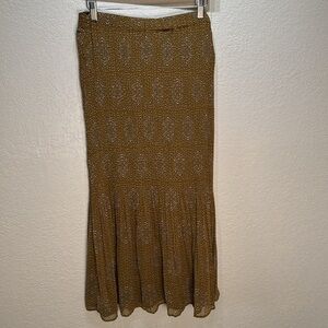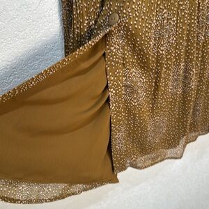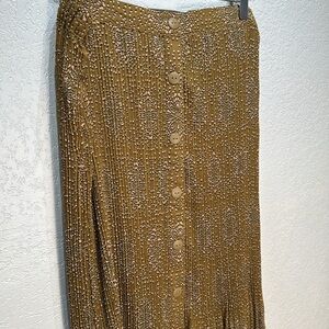DR2 Women's Large Tan Pleated Button Up Skirt Mid Calf Lined Elastic Waist