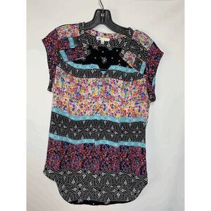 DR2 Women's Multicolor Floral Short Sleeve V Neck Casual Tunic Blouse Top Small