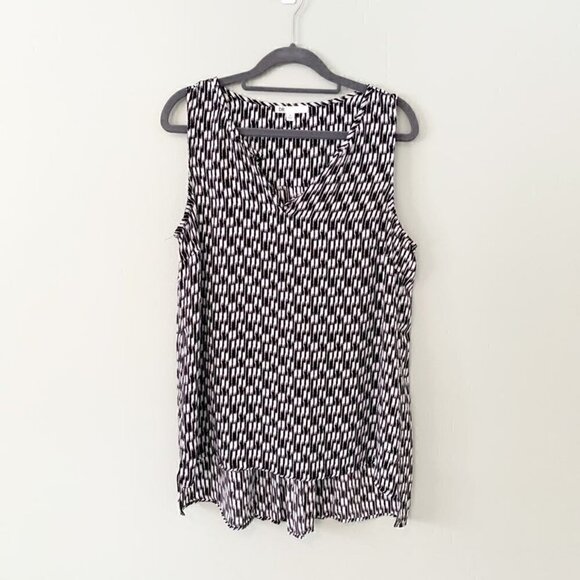 DR2 black white sheer lightweight sleeveless tank top blouse -‎ Medium