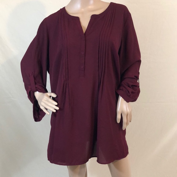 DR2 wine-colored flowy blouse.