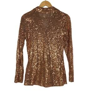 DR2 by Daniel Rainn Shirt Sequin Ruched Long Sleeve Button-Up Copper Rose NWT S