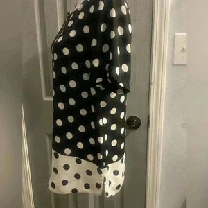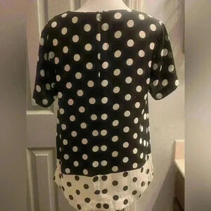 DR2 by Daniel Rainn black & white contrast polka dot shirt sleeve top EUC Small