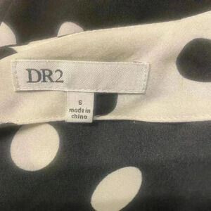 DR2 by Daniel Rainn black & white contrast polka dot short sleeve top with hidden back zipper. Slits on both sides. EUC women’s size Small. 100% poly Hand Wash cold SFPF HOME