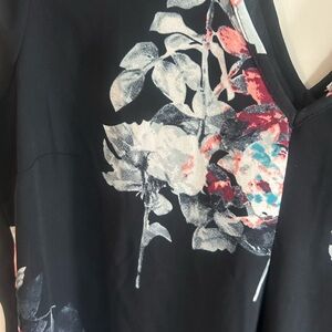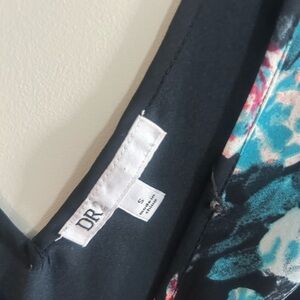 DR2 floral Black and Blue Asymmetrical Cap Sleeve Blouse