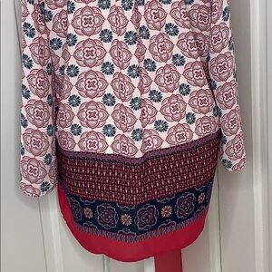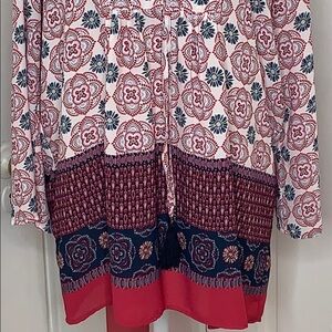 Daniel Rainn•Long Sleeve, Cold Shoulder, Tunic Length Blouse, with a Key Hole Neckline that has Ties with Tassels.
