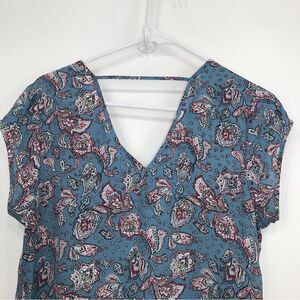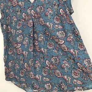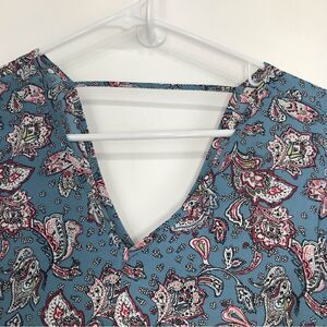 DR2 Blue Floral Paisley Flowing Cap Sleeve Blouse