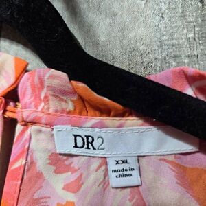 DR2 Pink and Orange Tropical Print Floral Plus Size Blouse