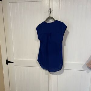 EUC DR2 beautiful blue, short sleeve top size PXS. Top is silky and feels great on! Back is just slightly longer than the top and it has cute accents on the top. I also have this in olive green in my closet.:)