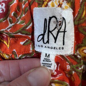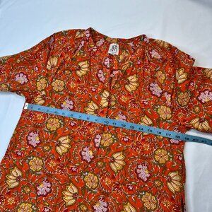 DRA Los Angeles Anthropologie Block Print Shirt Dress Orange Floral Medium