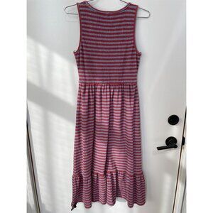 DRA Los Angeles Midi Dress Size Small Striped Sleeveless Scoop Neck Ruffle Hem