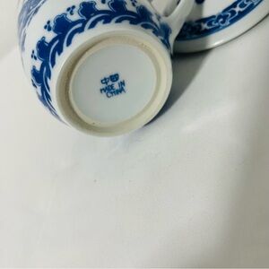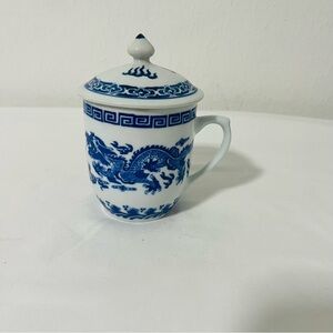 DRAGON Blue White Asian Porcelain Tea Steeping Mug with Lid Printed Dragon