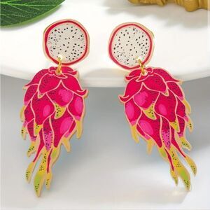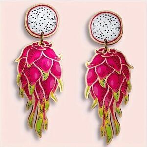 keywords: Dragon fruit vegan Earrings, Designer Original Sweet Trendy Statement fashion Animal Dangle Jewelry, Perfect For Summer Vacation & Beach Party Jewelry Unique Quirky Fashion Jewelry, Sweet Decor For Dog Lovers Statement Party Jewelry for Holiday, Birthday, and Special Occasions - Unique Bestie Couple Gift Idea Dangle Jewelry with Cute Cartoon Perfect for Summer Beach Lightweight Acrylic Dangling Unique Y2K Inspired fun funky whimsical kawaii goth punk earrings jewelry girls women's teenager's food