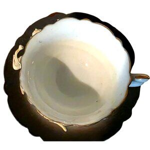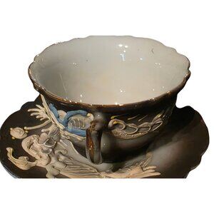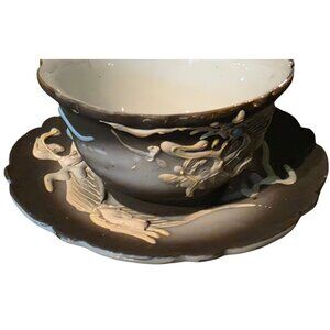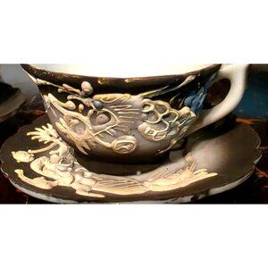 DRAGON Ware Black Moriage Tea Cup and Saucer Japan Demitasse Set Embossed Design