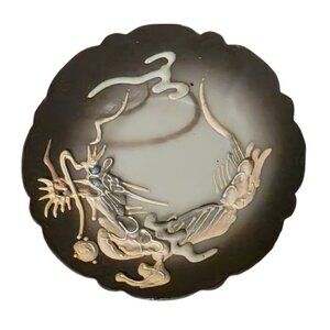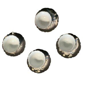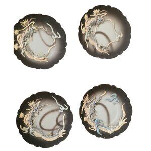 Vintage Japanese demitasse set featuring intricate black moriage dragon design. Perfect for collectors or tea enthusiasts.