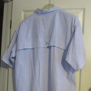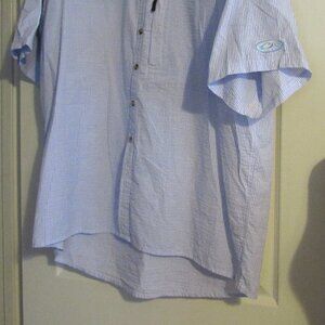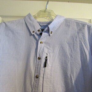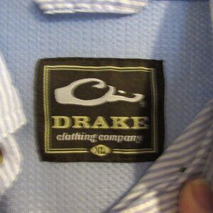 DRAKE Blue & White Striped Seersucker Shirt Button Front Short Sleeves Size XL