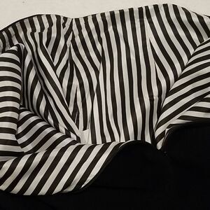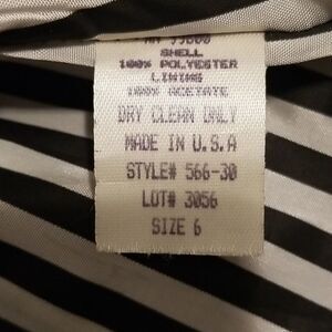 Side zipper. Pleats at the bottom. Stripe lining Dry Clean Only.