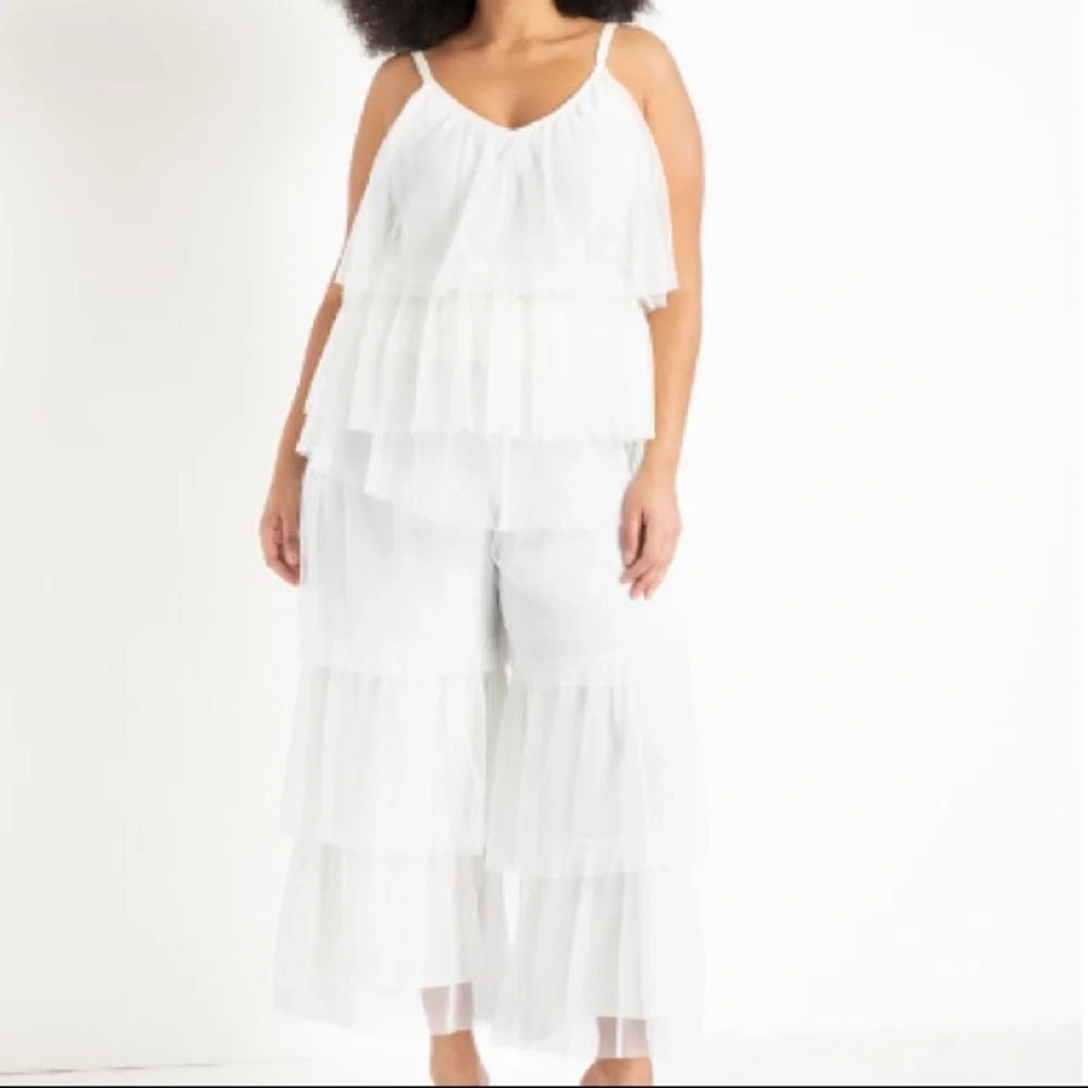 White Drama Ruffle Pants & Cami Top.