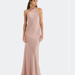 DRAPED Twist Halter Tie-Back Trumpet Gown