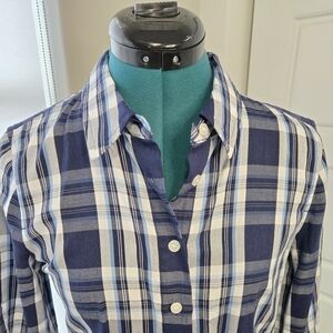 DRAPER JAMES BLUE PLAID BELL SLEEVE BLOUSE BUTTON UP SHIRT TOP WOMEN SIZE 4