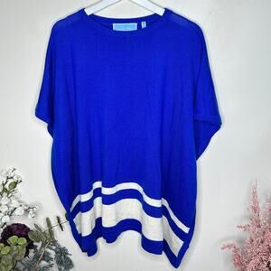 DRAPER JAMES Blue White Spirit Sweater Cape Poncho {3S16}