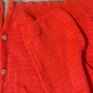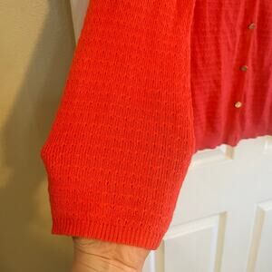 DRAPER JAMES Coral Gold Buttons Stitch Cardigan 1X *missing last button* Perfect pop of color to add to your wardrobe. Throw it on with jeans or over a sundress for the cooler temps.