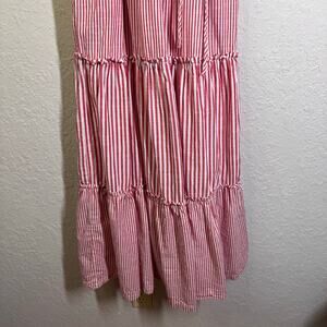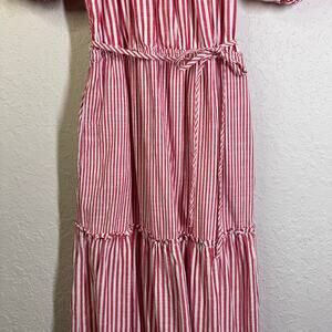 DRAPER JAMES Dress Medium Striped Off Shoulder Tiered Prairie Maxi Puff Sleeve