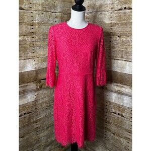 DRAPER JAMES FLORAL LACE BELL SLEEVE SHEATH DRESS. AS SEEN IN REESE'S BOOK. LINED WITH ROUND NECK LINE AND BACK ZIPPER CLOSURE. THIS DRESS IS FIGURE HUGGING AND IS TRUE TO SIZE WHICH OFFERS NO STRETCH. NO FLAWS. SEE PICS FOR MATERIAL TAG. OFFERS WELCOME.