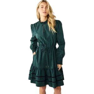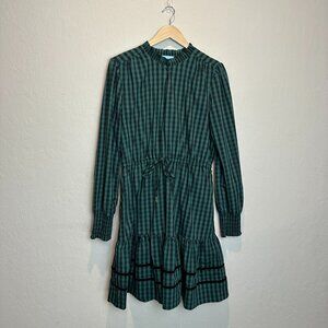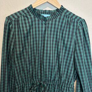DRAPER JAMES Green Gingham Long Sleeve Dress