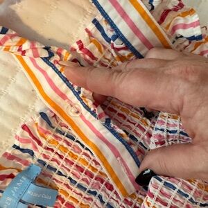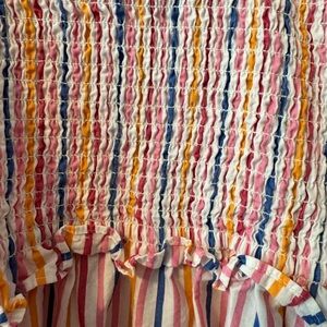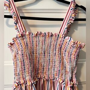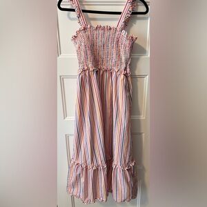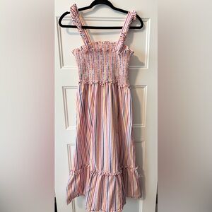 DRAPER JAMES Kimberly Multicolored Striped Ruffle Smocked Midi Dress Size Small