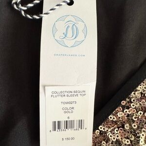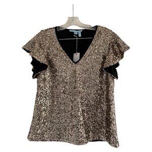 DRAPER JAMES (NWT) Women Gold Black Sequin Holiday Flutter Sleeve Blouse-Size 6
