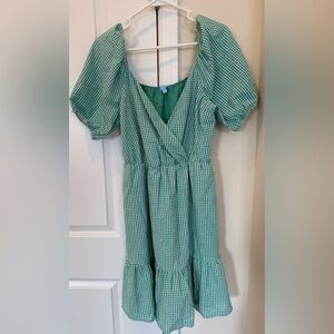 DRAPER JAMES Puff SLeeve Surplice Gingham Dress Medium NWOT NEW. 1351
