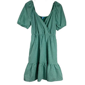 DRAPER JAMES RSVP Green Gingham Summer Dress Small