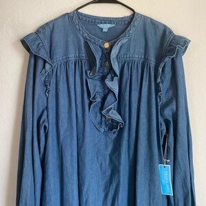 DRAPER JAMES RSVP Jean Sheath Mini Blue Ruffled Denim Cottagecore Dress XXL