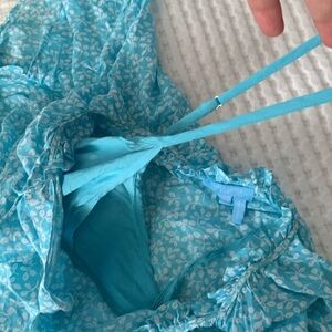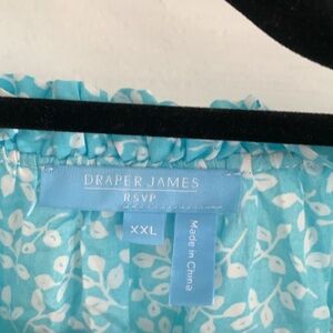 DRAPER JAMES RSVP Keyhole Pleat Neck Dress Turquoise Blue White XXL NWT