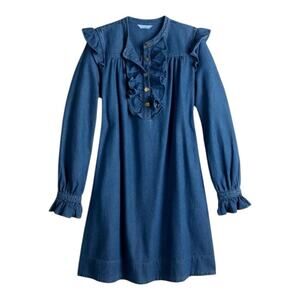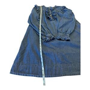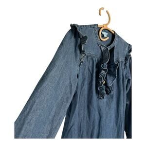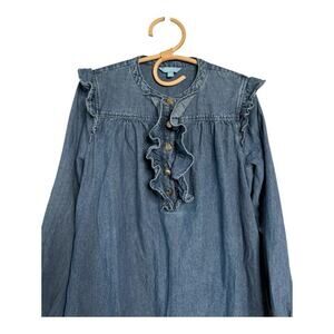 DRAPER JAMES RSVP Ruffle Bib Medium Wash Denim Jean Sheath Mini Dress Size M