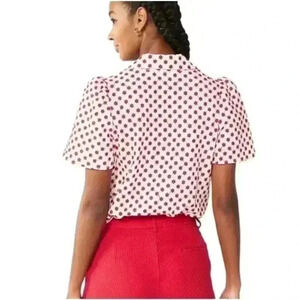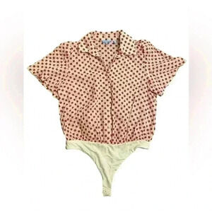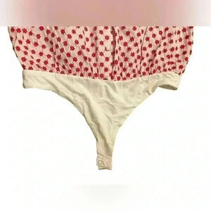 DRAPER JAMES RSVP Women’s Floral Eyelet White Red Print Bodysuit Shirt Sz L
