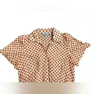 In great worn condition! Does need to be steamed and one of the buttons is loose(still attached,but is loose)
