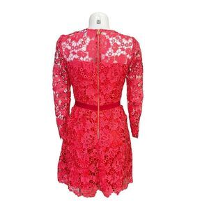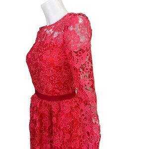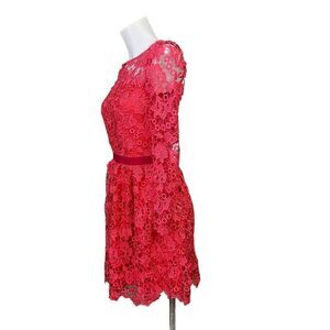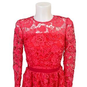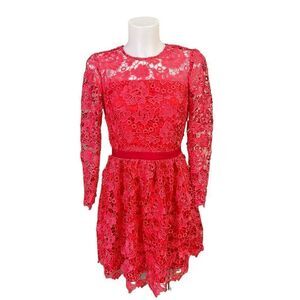 DRAPER JAMES Red Floral Lace Crochet Elegant Longsleeve Mini Dress sz 0