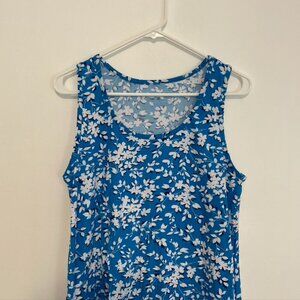 - turquoise blue / white / navy blue floral print scoop neck sleeveless pj pajama sleep nightgown sleepwear (looks to me like it could pass as a shift and/or tank dress or swimsuit coverup)