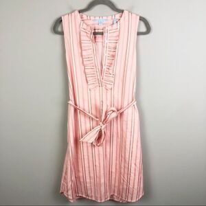 DRAPER JAMES | Ruffle Striped Belted Pink Dress Women’s Size X-Small