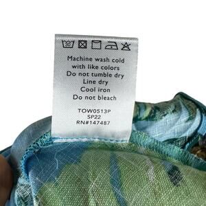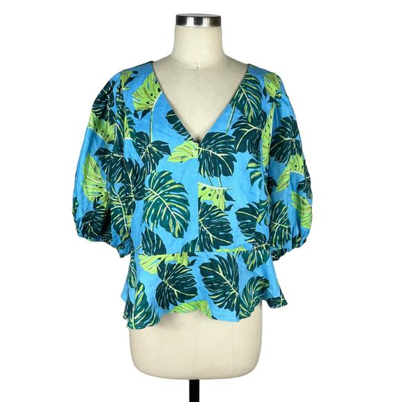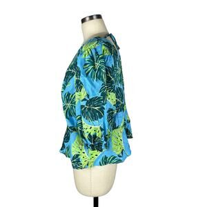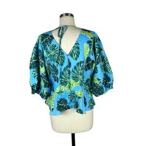 Colorful blue and green tropical palm print puff sleeve blouse from Draper James in size 18. Excellent, like new condition.