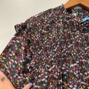 DRAPER JAMES Womens Blouse Sz 3X Green Western Floral Long Sleeve Smocked Top