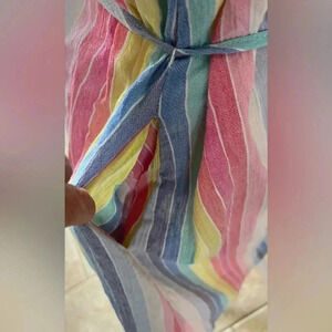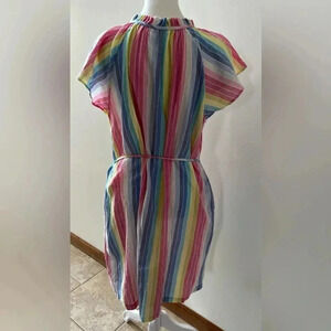 Draper James by Reese Witherspoon, RSVP dress. Colorful, rainbow colors. Lightweight, gauze. Flowy and loose. Flutter sleeves. Tie at waist. 2- side pockets. Ruffled collar, slight v-neck. Like new condition.