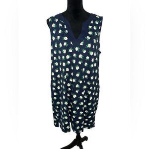 Keywords: Draper James, Lands' End, sleeveless dress, knee-length, blue dress, floral print, casual dress, spring fashion, V-neck, breathable fabric, machine washable, women's fashion, pre-owned dress, comfortable dress, brunch outfit.