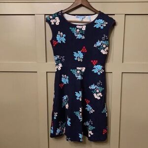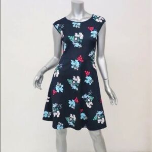 DRAPER James Floral Ponte A-Line Dress Navy Stretch Jersey Size XS