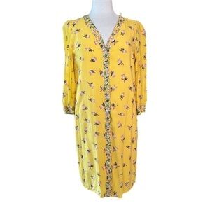 DRAPER James Size M Yellow Floral Long Sleeve Button front Dress