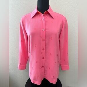 DRAPER’S & DAMON’S Petites Button Up Pink Blouse Embroidered Long Sleeve | Small